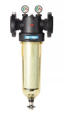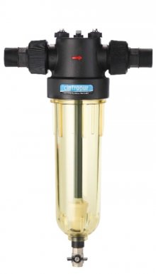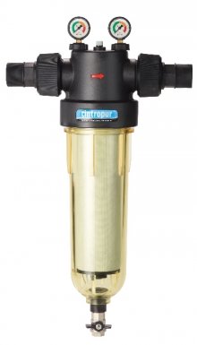 Die CINTROPUR® Zentrifuge wandelt das einströmende Wasser in einen Strudel um und schleudert die “schweren” Teilchen in den unteren Teil der Filterglocke, so dass die Filtermanschette nur noch die feinen Schwebeteilchen, je nach Wahl der Filterfeinheit, zurückhält. Die im unteren Teil angesammelten groben Schmutzpartikel werden bei Bedarf per Kugelhahn abgelassen.