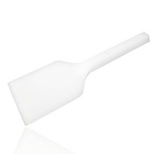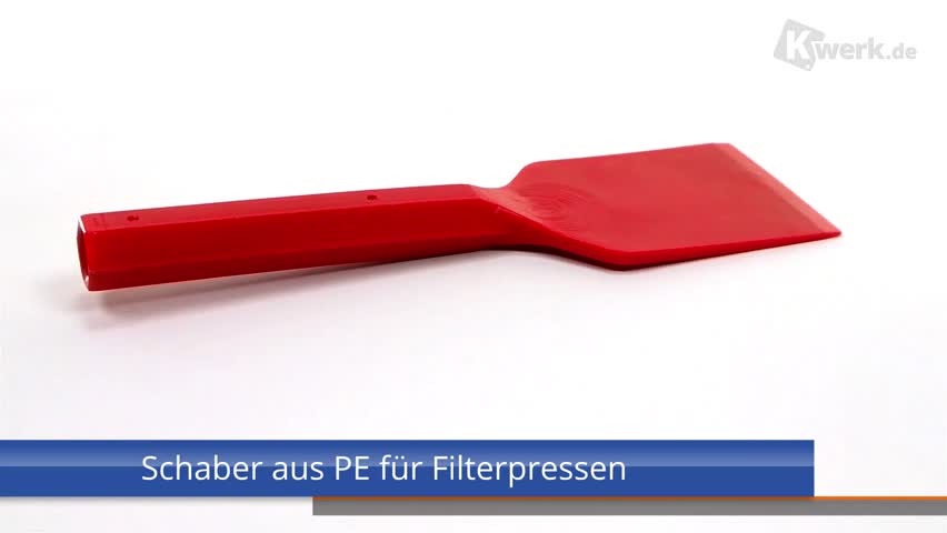 Schaber aus Kunststoff und hier insbesondere unsere Schaber aus PE in verschiedenen Ausführungen, finden ihre Anwendung in vielfältigen Bereichen der Industrie-, Chemie- und Verfahrenstechnik. Die von dem Unternehmen Kwerk GmbH in Montabaur produzierten Schaber sind langlebig und aufgrund der Größe für Rührarbeiten und auch für Reinigungszwecke in der Lebensmittel- und Lackindustrie einsetzbar. Auf der Grifffläche sind zwei Bohrungen eingebracht, die es ermöglichen, den Schaft mit einer Verlängerung aus Holz oder einem stabilen Kunststoffrohr zu versehen. Der Schaber aus PE, Farbe BLAU wird oftmals für die Reinigung von Filtertüchern der Filterpressen eingesetzt. Der Schaber ist aus dem Werkstoff PE-MD (mittlere Dichte) hergestellt, halb hart und etwas biegsam und verhindert damit, dass evtl. wichtige Anlagenteile nicht beschädigt werden. |